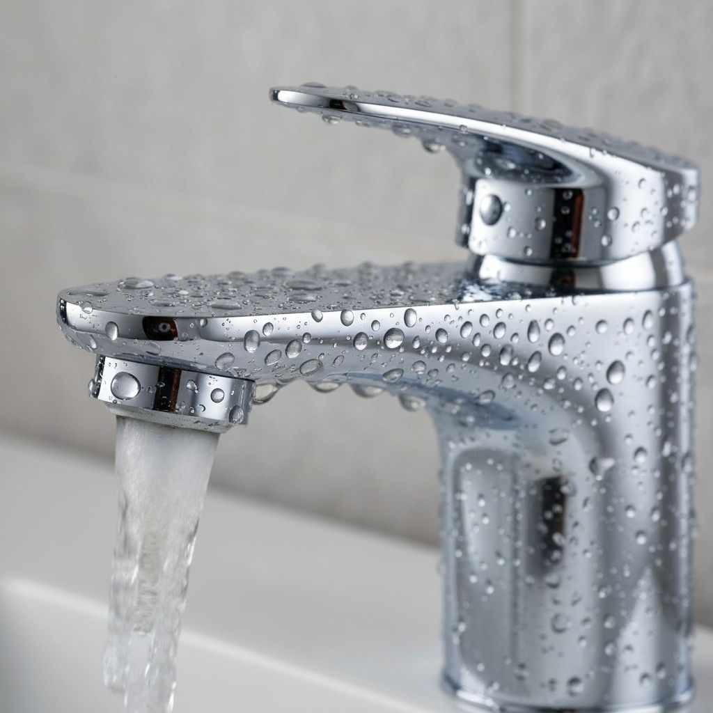 수전 표면에 코팅제를 도포하여 물때를 방지하고 광택을 살립니다.